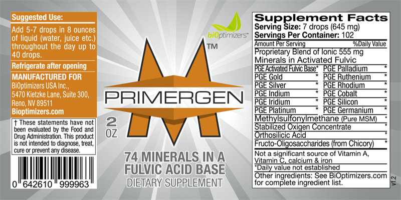 • Primergen-M delivers over 74 minerals in a liquid fulvic acid base.