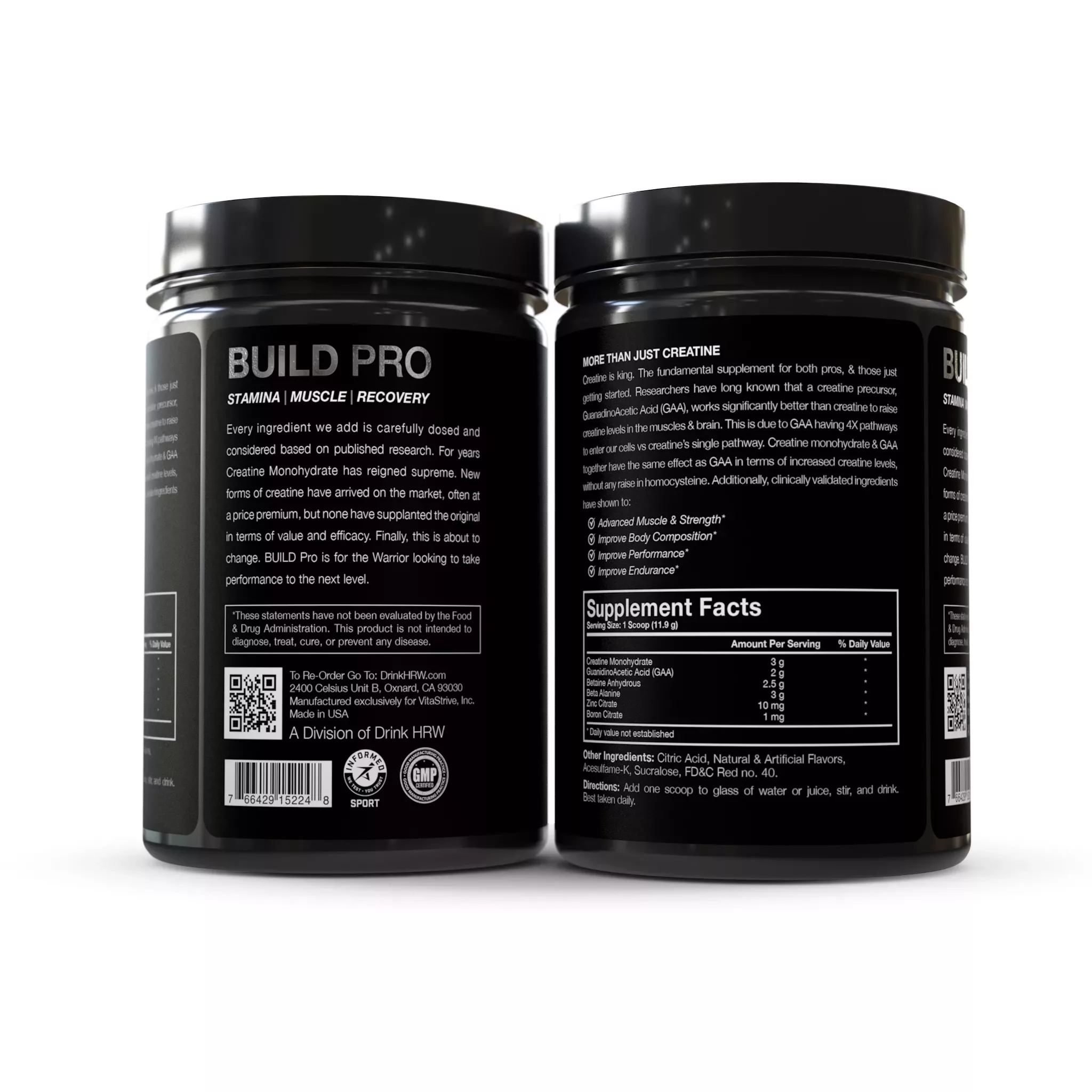 But BUILD PRO from DRINKHRW doesn’t stop at just creatine and GAA. Our performance stacked formula also includes: