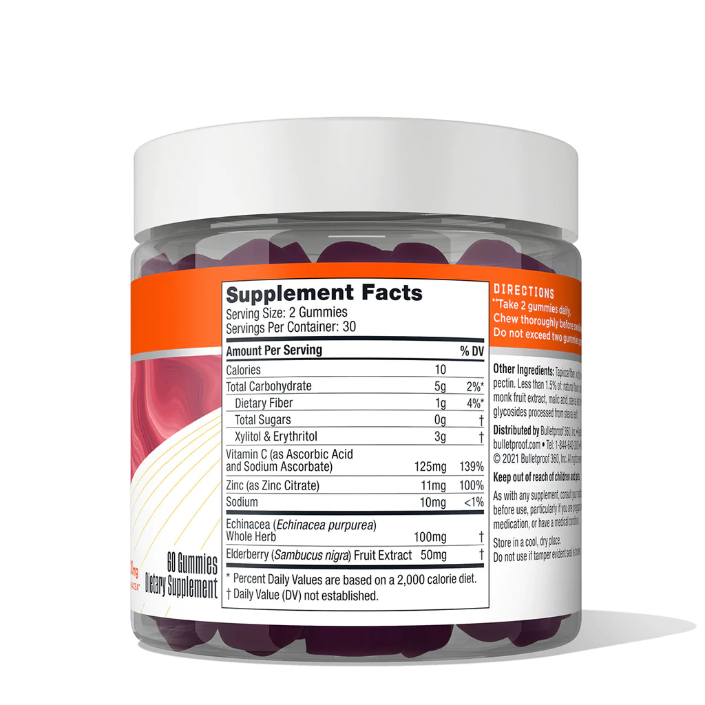 - Functional Ingredients: Bulletproof Immune Gummies also contain zinc, elderberry, and echinacea. These powerful ingredients work together to further strengthen your immune system and enhance its natural defenses.† Experience the synergy of nature’s finest elements.