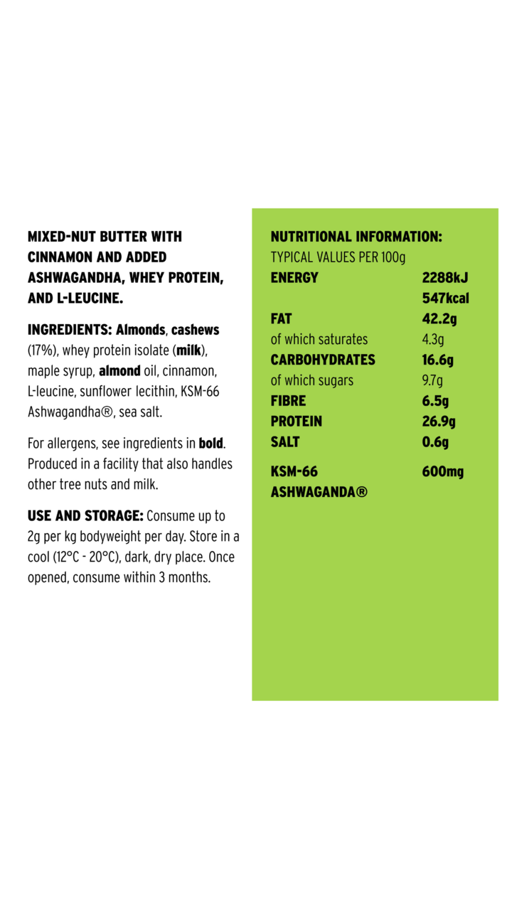 Regular Ashwagandha intake builds endurance exercise capacity and speeds the rate at which people gain muscle and strength during resistance training. The whey protein isolate and L-leucine (an amino acid present in most foods) also promote muscle growth while helping to control appetite and bolstering immune function.