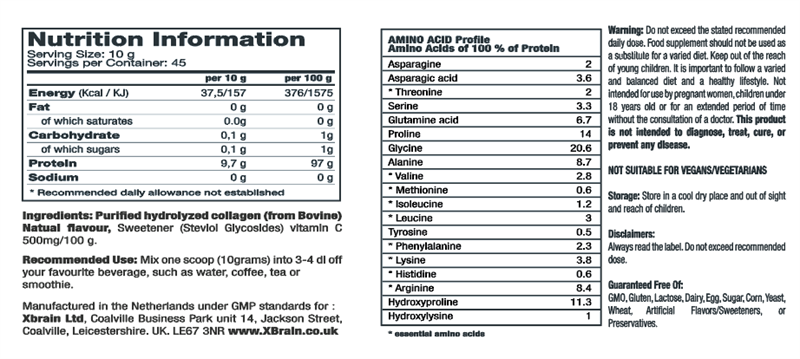 Ingredients in XBrain Collagen Vanilla