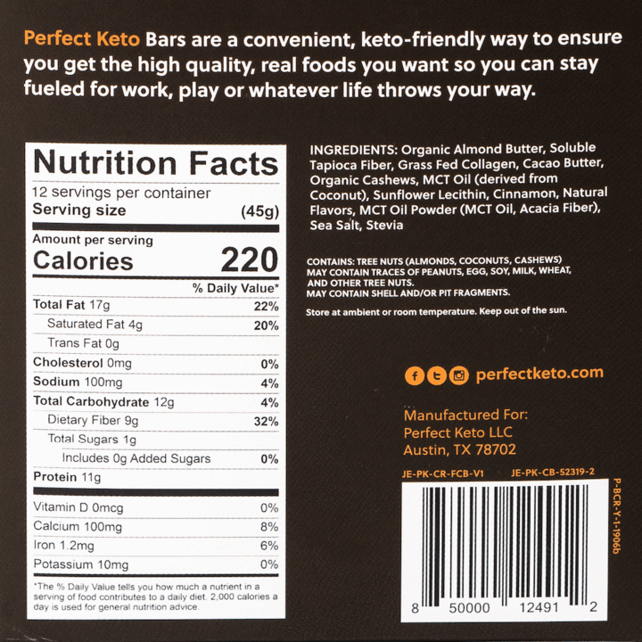 As well as numerous healthy ingredients mentioned above, Perfect Keto bars contain collagen – the most abundant protein in the human body which supports the health of your hair, skin, nails and joints making it essential.