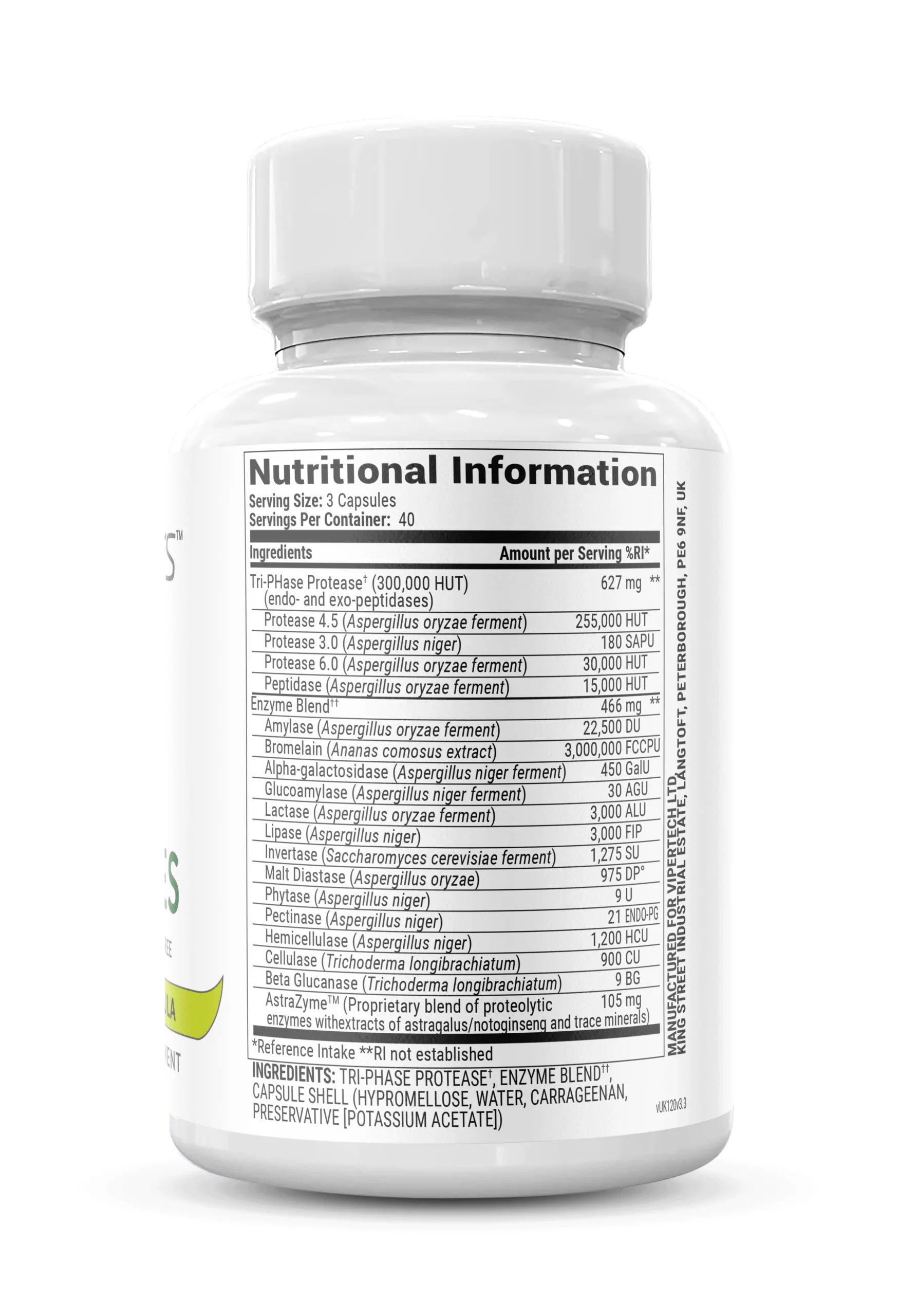 MassZymes is a 100% plant-based, naturally derived digestive enzyme supplement which comes as 120 individual capsules. One serving of three capsules is recommended daily with a balanced meal for full digestive benefits. Although you can take on an empty stomach, it is not recommended as it can cause digestive upset.