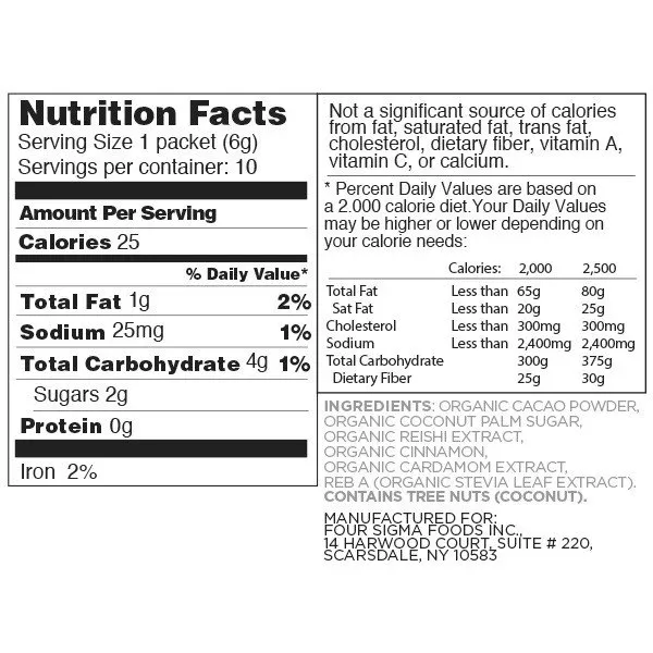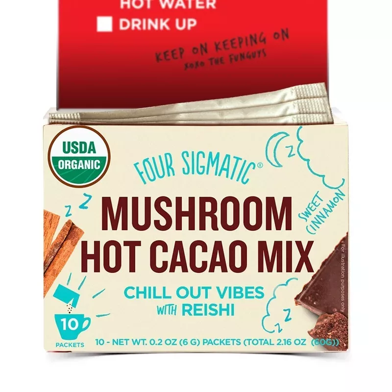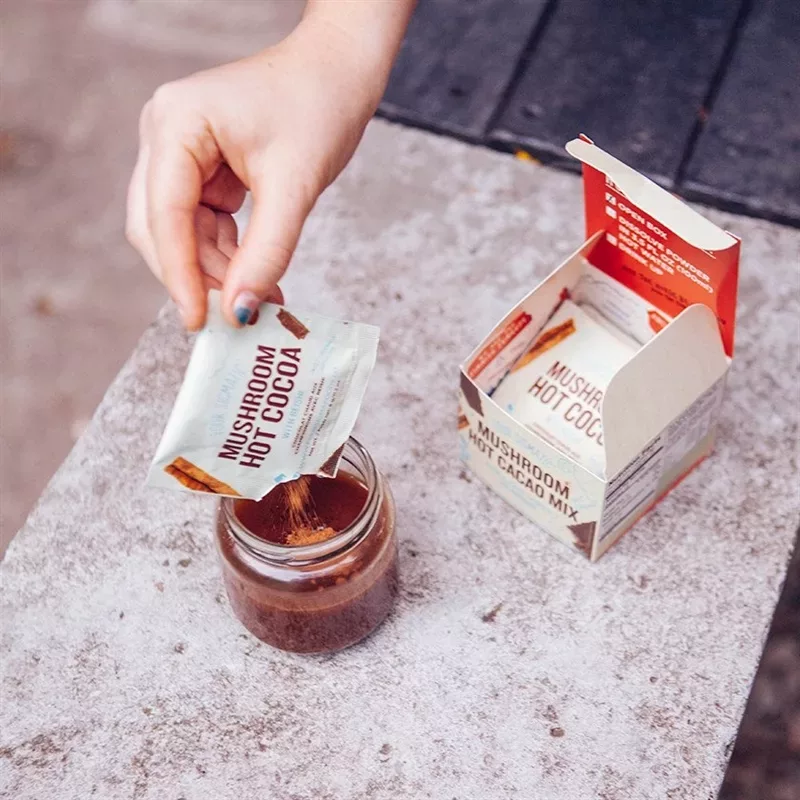 You can enjoy Mushroom Hot Cacao with Reishi in the early evening to wind down or as a perfect dessert drink to create a relaxed moment. Drink it espresso style by adding one packet to 3 fluid oz of hot water. You can also try it with a splash of coconut milk. Drink two servings per day.